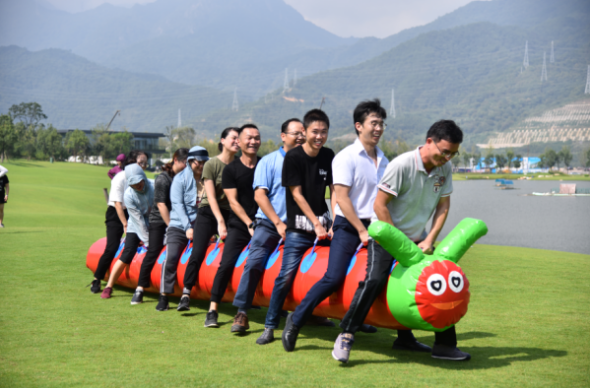 與傳統(tǒng)運動會不同,此次趣味運動會環(huán)節(jié)豐富、趣味十足、合作性強,涵蓋了旋轉接水、毛毛蟲、跳一跳三個項目環(huán)節(jié)。所有參賽人員按隨機性破冰重組,分為四隊,每個項目都是以多人合作為比賽模式,不但考驗了參賽者的協(xié)調能力和身體素質,更考驗了團隊合作精神。賽場上,隊員們笑容滿臉,精力充沛,全力投入,場上時時爆出掌聲和拼搏的歡呼聲,真正賽出風采,賽出凝聚力。