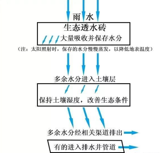 什么是海綿城市?簡言之,就是城市像海綿一樣有彈性,能吸水、蓄水、排水,實(shí)現(xiàn)水循環(huán)利用、有效防內(nèi)澇。鋪設(shè)生態(tài)透水磚,是除雨污分流改造外,我市海綿城市建設(shè)的一個(gè)重點(diǎn)和亮點(diǎn)。鋪有生態(tài)透水磚的人行道,看上去好像與鋪設(shè)普通磚的人行道沒什么兩樣,但仔細(xì)一看就會(huì)發(fā)現(xiàn)有所不同,生態(tài)透水磚表面布滿小孔,而普通磚表面比較光滑。這是因?yàn)樯鷳B(tài)透水磚以礦渣廢料、石屑、普通硅酸鹽水泥為主要原料,設(shè)計(jì)有一定孔隙率,經(jīng)高頻振動(dòng)加壓而成,普通磚則主要用石粉廢渣、低標(biāo)號(hào)水泥等制成下雨時(shí),生態(tài)透水磚能大量吸收并保存水分,達(dá)到飽和狀態(tài)后保存不了的多余水分則透過磚體進(jìn)入土壤層,從土壤層出來后的多余水分最后經(jīng)相關(guān)渠道排出,有的通過排水井管道排出。而普通磚只能吸收少量水分,大部分水經(jīng)由地表流掉,易導(dǎo)致路面積水。